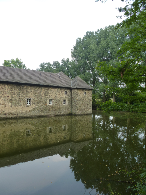 Vom Parkplatz geht es erst einmal zur „Haus Gravener Straße“. Diese überqueren und in die Straße „Im Schwanenfeld“ wandern. Am Ende der Wasserburg Haus Graven rechts ab. Der schmale und von Zäunen gesäumte Pfad führt an einen kleinen Bachlauf und folgt diesem in den Wald. An einer Waldwegekreuzung dann nach rechts weiter. Diesem Weg folgt man nun auch dort, wo er schmaler wird, solange in Laufrichtung bis er wieder an die „Haus Gravener Straße“ stößt. Auf der gegenüberliegenden Straßenseite folgt man ihr nach rechts. An der ersten Möglichkeit links ab und am Waldrand entlang. Dann auf Asphalt wenige Meter dem Rechtsknick folgen und daraufhin nochmals rechts herum. Nun auf unbefestigten Pfad in den Wald. Auf diesem Weg geht es durch den Wald. Hinter einer Brücke führt er am Feldrand entlang eines Zaunes weiter. Der Weg wird schmaler und auch auf der rechten Seite steht nun ein Zaun. Schließlich erreicht man eine Straße, welche es zu überqueren gilt. Auf der anderen Seite auf dem Schotterweg wieder in den Wald. Dem Weg in seinem Linksbogen folgen. Die folgende Kreuzung durchwandern. An der Wegeteilung danach, links der Laufrichtung treu bleiben. An der Kreuzung kurz darauf links durch rot-weiße Sperrpfosten wandern. Am Ende des Überflutungsbereiches mit dem Weg nach rechts wandern. Kurz darauf schwenkt er wieder nach links und mündet schließlich an einer Hauptverkehrsstraße. Mittels zweier Fußgängerampeln erreicht man die „Langhansstraße“ auf der gegenüberliegenden Seite und wandert in diese hinein. Gegenüber von Hausnummer 11-13 wechselt man die Straßenseite, hält aber die Laufrichtung bei. Jetzt geht es wenige Meter abseits der Straße weiter. Eine Parkplatzeinfahrt queren und mit dem Weg langsam aber sicher weiter in den Wald hinein. Abzweige nach links oder rechts ignorieren. Dann stößt der Weg an eine Straße. Diese queren und wieder in den Wald. An der folgenden Kreuzung geradeaus wandern. Dort wo sich dann der Pfad gabelt, rechts halten. Nun links an Sperrpfosten vorbei und an der Straße links halten. An der ersten Möglichkeit wiederum nach links wenden. Gleich darauf geradeaus halten. Wenig später schwenkt der Weg nach links und führt unter mächtigen Buchen her. Dann auf dem breiten Hauptweg nach rechts wandern. An der nächsten Wegeteilung abermals rechts halten. An einer Schranke vorbei überquert man einen Parkplatz. Laut meiner Karte soll es nun rechts abgehen. Das Wegezeichen jedoch sagt: Geradeaus. Also die Straße queren und geradeaus in die Sackgasse hinein. An der Zufahrt zu den Häusern 10-17a vorbei. Man erreicht die vom Hinweg bekannte Strecke und wandert auf dieser zum Parkplatz zurück.