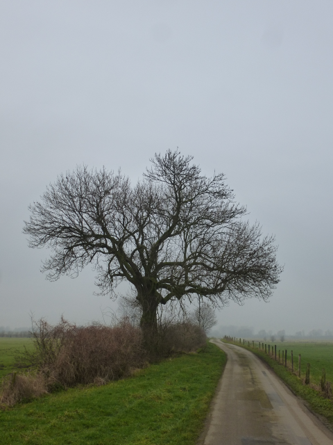 Von der Kirche wandert man parallel der Straße „Grietherbusch“ nach rechts. An der abknickenden Vorfahrt die Straße überqueren und auf dem rechten Weg der Gabelung in die Felder wandern. Jetzt kann man den Kopf „ausschalten“ und die typische niederrheinische Landschaft für eine ganze Weile einfach nur genießen. Erst vor dem Bauernhof knickt der Weg nach rechts. Nun im Linksbogen um den Hof herum und auf der gegenüberliegenden Seite nach abermals nach rechts wenden. Nach geraumer Zeit teilt sich der Weg und man hält sich rechts. Diesem Weg nun lange folgen, bis er endet. Hier noch einmal nach links wenden und zum Parkplatz zurück wandern.